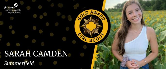 Girl Scouts Carolinas Peaks to Piedmont is pleased to announce that Sarah Camden, Summerfield, has earned her Girl Scout Gold Award, the highest award in Girl Scouting. Camden, daughter of Billy and Becky Camden and a member of Girl Scout Troop 41704, established the “Sunshine Club” at Summerfield Charter Academy. She created a safe environment … Continue reading Sarah Camden Earns Girl Scouts Highest Honor