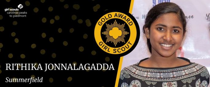 Girl Scouts Carolinas Peaks to Piedmont is pleased to announce that Rithika Jonnalagadda, Summerfield, has earned her Girl Scout Gold Award, the highest award in Girl Scouting. Jonnalagadda, daughter of Janardhana Jonnalagadda and Rama Vishwanatham and a member of Girl Scout Troop 41704, focused her Gold Award project on teaching students and their families how … Continue reading Rithika Jonnalagadda Earns Girl Scouts Highest Honor
