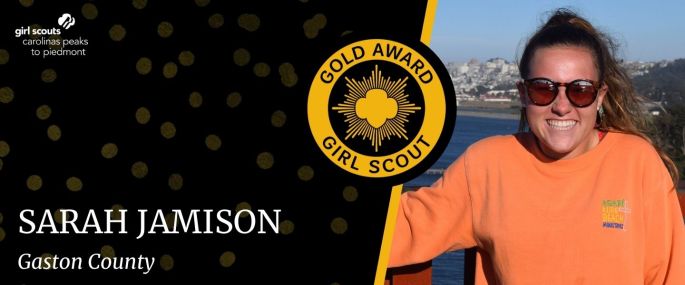 Girl Scouts Carolinas Peaks to Piedmont is pleased to announce that Sarah Jamison, Belmont, has earned her Girl Scout Gold Award, the highest award in Girl Scouting. Jamison, daughter of Phil and Debora Jamison and a member of Girl Scout Troop 20418, collected school supplies, books, soap, toothbrushes and non-perishable food items for the clothing … Continue reading Sarah Jamison Earns Girl Scouts Highest Honor