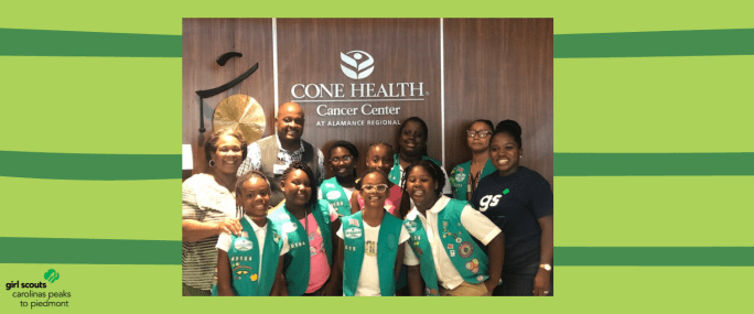Congratulations to Maya, Aliana, Megan, Naomi, Taylor, JaNiya, Kadence, Sa'Myah, Gavrielle, Amaris, Amira, Kaleyana, Camille and Jada from Girl Scout Troop 40514 of Guilford County on earning their Girl Scout Bronze Award earlier this year! After making the initial decision to support cancer patients at their local hospital, the troop researched and learned about the … Continue reading #TroopTuesday Bronze Award: Making the World a Better Place for Cancer Patients