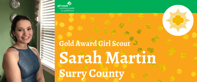 Girl Scouts Carolinas Peaks to Piedmont is pleased to announce that Sarah Martin, Mount Airy, has earned her Girl Scout Gold Award, the highest award in Girl Scouting. Martin, daughter of Tony and Beth Martin and a member of Girl Scout Troop 40465, worked with students at BHT Primary School throughout the school year and … Continue reading Sarah Martin Earns Girl Scouts Highest Honor