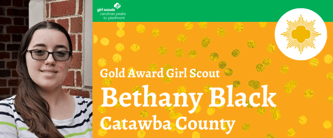 Girl Scouts Carolinas Peaks to Piedmont is pleased to announce that Bethany Black, Conover, has earned her Girl Scout Gold Award, the highest award in Girl Scouting. Black, daughter of Clint and Jodi Black and a member of Girl Scout Troop 10871, organized Life Skills Workshops in partnership with The Corner Table in Newton. Each … Continue reading Bethany Black Earns Girl Scouts Highest Honor