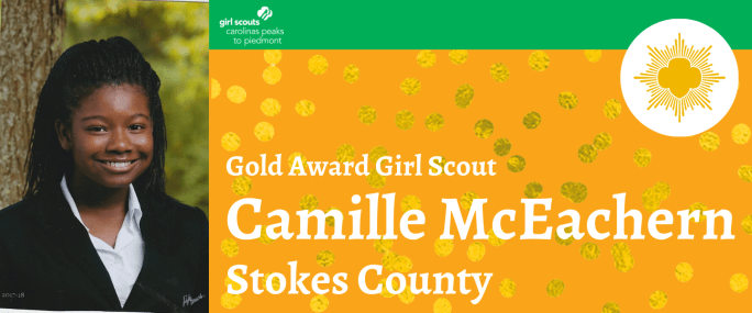 Girl Scouts Carolinas Peaks to Piedmont is pleased to announce that Camille McEachern, Walnut Cove, has earned her Girl Scout Gold Award, the highest award in Girl Scouting. McEachern, daughter of Julius and Kimble McEachern and a member of Girl Scout Troop 2609, learned film and editing skills so that she could create a YouTube … Continue reading Camille McEachern Earns Girl Scouts Highest Honor