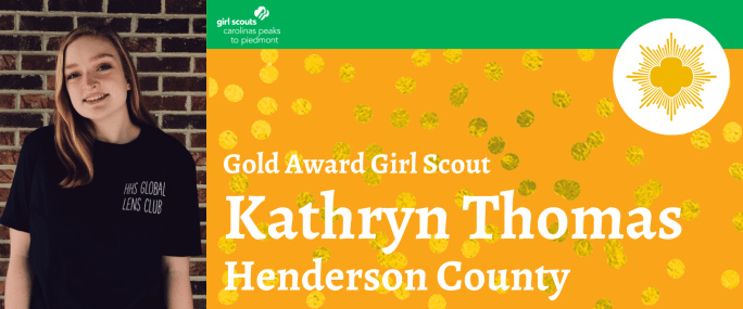 Girl Scouts Carolinas Peaks to Piedmont is pleased to announce that Kathryn Thomas, Hendersonville, has earned her Girl Scout Gold Award, the highest award in Girl Scouting. Thomas, daughter of David and Ann Thomas and a member of Girl Scout Troop 30437, created a Global Lens Club at Hendersonville High School after being disappointed by … Continue reading Kathryn Thomas Earns Girl Scouts Highest Honor
