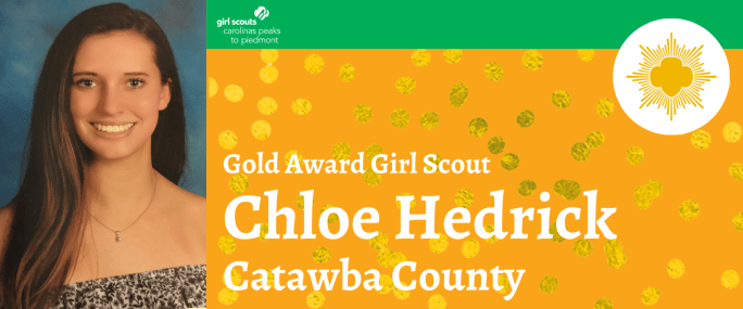 Girl Scouts Carolinas Peaks to Piedmont is pleased to announce that Chloe Hedrick, Conover, has earned her Girl Scout Gold Award, the highest award in Girl Scouting. Hedrick, daughter of Shawn and Monica Hedrick and a member of Girl Scout Troop 10441, chose to educate children in her community about water safety and basic swimming … Continue reading Chloe Hedrick Earns Girl Scouts Highest Honor