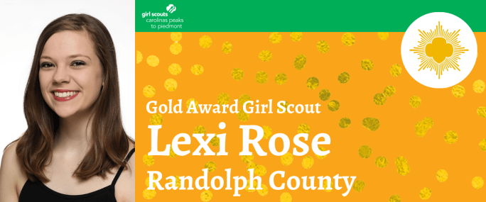 Girl Scouts Carolinas Peaks to Piedmont is pleased to announce that Lexi Rose, Climax, has earned her Girl Scout Gold Award, the highest award in Girl Scouting. Rose, daughter of Steve and Jennifer Rose and a member of Girl Scout Troop 40240, organized an Embrace the Differences event for special needs students to celebrate National … Continue reading Lexi Rose Earns Girl Scouts Highest Honor