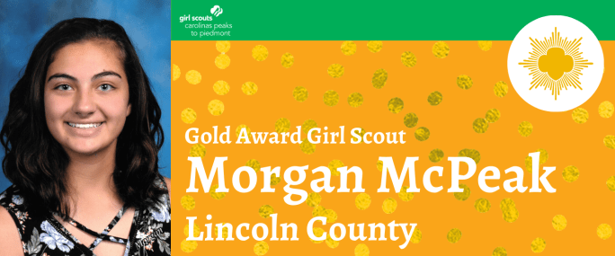 Girl Scouts Carolinas Peaks to Piedmont is pleased to announce that Morgan McPeak, Denver, has earned her Girl Scout Gold Award, the highest award in Girl Scouting. McPeak, daughter of Todd and Jill McPeak and a member of Girl Scout Troop 20160, created the Lexiled Lending Library, as part of the summer reading program for … Continue reading Morgan McPeak Earns Girl Scouts Highest Honor