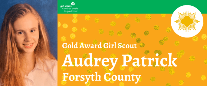 Girl Scouts Carolinas Peaks to Piedmont is pleased to announce that Audrey Patrick, Winston-Salem, has earned her Girl Scout Gold Award, the highest award in Girl Scouting. Patrick, daughter of John and Dominique Patrick and a member of Girl Scout Troop 40184, partnered with WSFCS and constructed two Little Free Libraries in underserved areas of … Continue reading Audrey Patrick Earns Girl Scouts Highest Honor