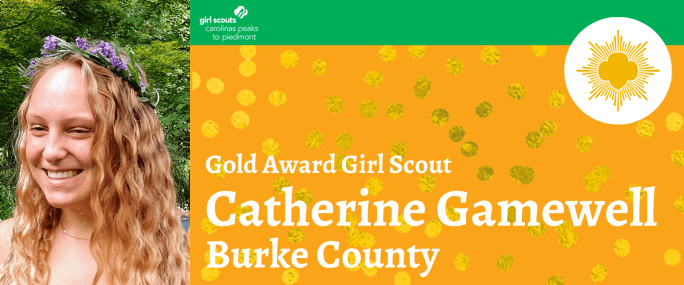 Girl Scouts Carolinas Peaks to Piedmont is pleased to announce that Catherine Gamewell, Morganton, has earned her Girl Scout Gold Award, the highest award in Girl Scouting. Gamewell, daughter of Paul and Teresa Gamewell and a member of Girl Scout Troop 10383, worked with city officials to design and create three kinetic bamboo sculptures to … Continue reading Catherine Gamewell Earns Girl Scouts Highest Honor
