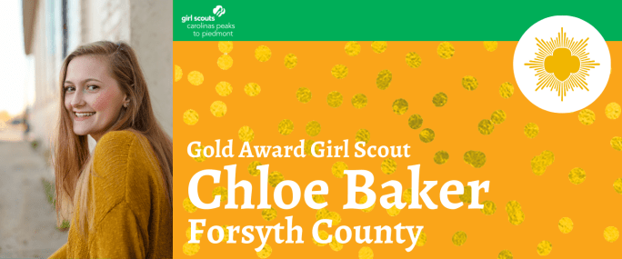 Girl Scouts Carolinas Peaks to Piedmont is pleased to announce that Chloe Baker, Winston-Salem, earned her Girl Scout Gold Award, the highest award in Girl Scouting. Baker, an Individually Registered Girl of Girl Scout Troop 80017, created a bench and a storage center at Trellis Supportive Care, in memory of her stepfather who passed away … Continue reading Chloe Baker Earns Girl Scouts Highest Honor