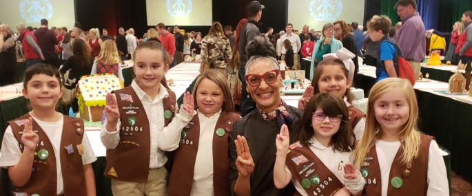Troop 42504 entered the child division and placed in the top 10 for their entry at the National Gingerbread House Competition at Asheville's The Omni Grove Park Inn. The winners were selected by a panel of judges including celebrity chef Carla Hall (pictured with Troop 42504), James Beard Award-winning chef Cheryl Forberg, and Mark Seaman, … Continue reading #TroopTuesday: Success at the National Gingerbread House Competition