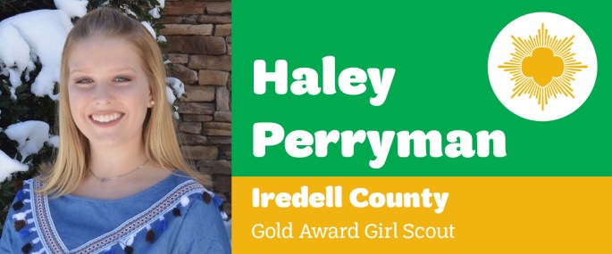 Girl Scouts Carolinas Peaks to Piedmont is pleased to announce that Haley Perryman, Mooresville, earned her Girl Scout Gold Award, the highest award in Girl Scouting. Perryman, daughter of Drew and Beth Perryman and member of Girl Scout Troop 10009, invited military representatives to Pine Lake Preparatory’ s career fair during the 2017-2018 school year … Continue reading Haley Perryman Earns Girl Scouts Highest Honor