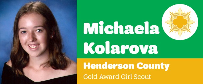 Girl Scouts Carolinas Peaks to Piedmont is pleased to announce that Michaela Kolarova, Hendersonville, earned her Girl Scout Gold Award, the highest award in Girl Scouting. Kolarova, daughter of Roman and Holly Kolarova and a member of Girl Scout Troop 30447, worked with several trail experts to construct a nature trail at Nesbitt Discovery Academy … Continue reading Michaela Kolarova Earns Girl Scouts Highest Honor