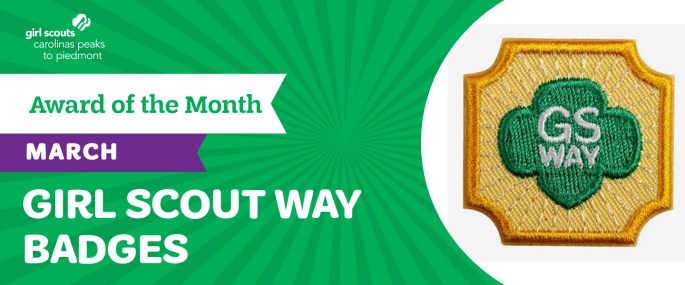 Every year, Girl Scouts Carolinas Peaks to Piedmont hosts a Weekend of Service, where we encourage all our girls, volunteers and members to do a good turn in their community. Weekend of Service is April 12-14, and starting this year, we will be offering an optional theme to go along with the weekend. The year's … Continue reading April Award of the Month
