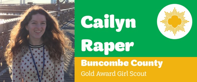 Girl Scouts Carolinas Peaks to Piedmont is pleased to announce that Cailyn Raper, Arden, earned her Girl Scout Gold Award, the highest award in Girl Scouting. Raper, daughter of Curtis and Selena Raper and a member of Girl Scout Troop 30447, turned excess land near her school, Martin L. Nesbitt, Jr. Discovery Academy, into an … Continue reading Cailyn Raper Earns Girl Scouts Highest Honor