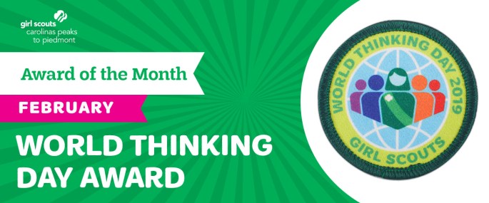 It’s your time to lead! On February 22, girls from more than 150 countries will come together to explore the global dimensions of Girl Scouting and take action to change the world for the better. The theme for this year’s World Thinking Day? Leadership! (Now that’s an idea we can all support!) Purchase your 2019 World Thinking … Continue reading February Award of the Month