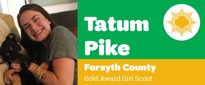 Girl Scouts Carolinas Peaks to Piedmont is pleased to announce that Tatum Pike, Winston-Salem, earned her Girl Scout Gold Award, the highest award in Girl Scouting. Pike, daughter of Crawford and Ashleigh Pike and a member of Girl Scout Troop 40525, revamped an unused storage room at St. Paul’s Church and converted it to an … Continue reading Tatum Pike Earns Girl Scouts Highest Honor