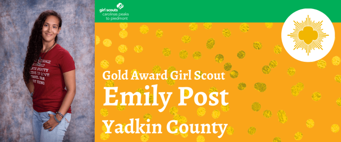 Girl Scouts Carolinas Peaks to Piedmont is pleased to announce that Emily Post, Yadkinville, has earned her Girl Scout Gold Award, the highest award in Girl Scouting. Post, daughter of Daniel and Carolyn Post and a member of Girl Scout Troop 40772, ran a bicycle donation program. She collected the bicycles, repaired them and then … Continue reading Emily Post Earns Girl Scouts Highest Honor