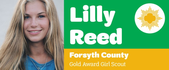 Girl Scouts Carolinas Peaks to Piedmont is pleased to announce that Lilly Reed, Winston-Salem, earned her Girl Scout Gold Award, the highest award in Girl Scouting. Reed, daughter of Jay and Shannon Reed and a member of Girl Scout Troop 41046, focused her project on teaching elementary school children the importance of community service. She … Continue reading Lilly Reed Earns Girl Scouts Highest Honor