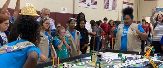 The Gastonia Girl Scout Robotics Team known as the “Blue Angles” competed in the FIRST® LEGO® League (FLL®) Tournament at Cannon School in Concord, NC. These girls worked hard to prepare for this tournament, learned a lot and proudly represented Girl Scouts! Great job on representing girls in STEM as well as using your creativity … Continue reading #TroopTuesday: Girl Scout Robotics Team Competes