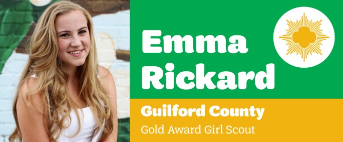 Girl Scouts Carolinas Peaks to Piedmont is pleased to announce that Emma Rickard, Greensboro, earned her Girl Scout Gold Award, the highest award in Girl Scouting. Rickard, daughter of Tim and Julie Rickard and a member of Girl Scout Troop 40185, built linen cabinets for Tabitha House, a recovery home for women, so that the … Continue reading Emma Rickard Earns Girl Scouts Highest Honor