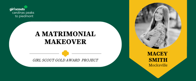 Girl Scouts Carolinas Peaks to Piedmont is pleased to announce that Macey Smith, Mocksville, has earned her Girl Scout Gold Award, the highest achievement a Girl Scout can earn. Smith, a member of Girl Scout Troop 2147, renovated and remodeled a preexisting courtyard at the Davie County Courthouse so that it could be used as … Continue reading A Matrimonial Makeover: Macey Smith’s Girl Scout Gold Award Project