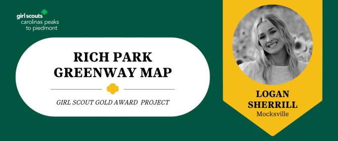 Girl Scouts Carolinas Peaks to Piedmont is pleased to announce that Logan Sherrill, Mocksville, has earned her Girl Scout Gold Award, the highest achievement a Girl Scout can earn. Sherrill, daughter of Shaun and Crystal Sherrill and a member of Girl Scout Troop 1265, helped to enhance the Rich Park Greenway System by creating a … Continue reading Rich Park Greenway Map: Logan Sherrill’s Girl Scout Gold Award Project