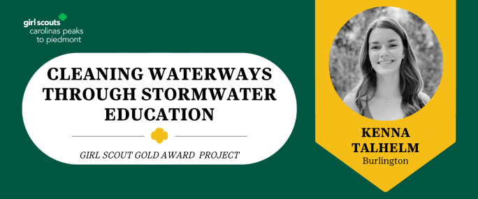 Girl Scouts Carolinas Peaks to Piedmont is pleased to announce that Kenna Talhelm, Alamance, has earned her Girl Scout Gold Award, the highest achievement a Girl Scout can earn. Talhelm, daughter of Kip and Kyle Talhelm, and a member of Girl Scouts Troop 40607, worked with Stormwater SMART with the Piedmont Triad Regional Council through … Continue reading Cleaning Waterways Through Stormwater Education: Kenna Talhelm’s Girl Scout Gold Award Project